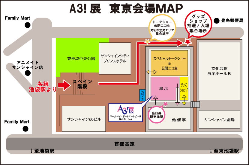 「A3!展」トレーディングエリアを「池袋サンシャインシティ ワールドインポートマートビル2F、3F屋外バルコニー」に設置いたします。その他の注意事項に関しては必ず以下をご確認ください。